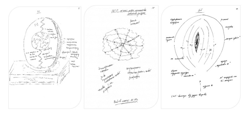 Идеята за посявка е визуализирана чрез яйцеподобна форма, свързана с процеси на разплод и размножение. Дадени са данни с езотеричен смисъл – „ин и ян“, „от-до“, „началото и края“ и се споменава безсмъртието и преходността на живите форми, живота и зараждането му.