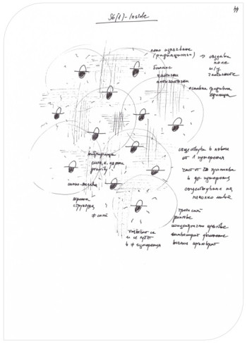 Данните логично добиват абстрактен характер. Линиите и преобразуващата зона действат заедно, тъй като са части от един механизъм. Първо са линиите, а като следваща стъпка (втора врата) е обръчът. Смисълът на извършвания от тях процес се изразява в потъване и архивиране на знанието. Функцията на линиите е да разкрият канал или канали, които да указват и трасират път. Вътре в канала условията на средата се променят драстично и пространството се уплътнява. Смисълът от съществуването на линиите се пресъздава от идейната композиция за места, които действат като „сифони“. Всичко се стича към тях и бива пренесено на друго място, където се складира и съхранява.