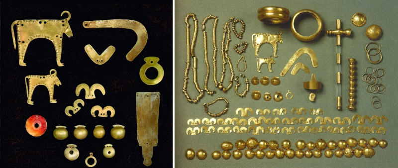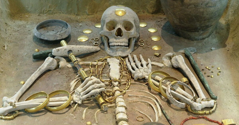 От лявата страна на владетеля е положено копие като символ на военна власт, а от дясно – меден и кремъчен предмет, вероятно скиптър. Открити са още златна диадема, златни гривни, обеци и огърлици, златни плочки и дискове, златен фалос и др. В допълнение към тези предмети са открити още медни оръжия, богато украсени керамични съдове с вероятно ритуално значение, кремъчни върхове за стрели, костени инструменти и артефакти със символно значение, свързани с погребалните обреди. Общото количество злато в гроба на владетеля е около 1,5 кг – най-голямото количество злато, намерено в един праисторически гроб изобщо. Негова експозиция можете да видите днес в археологическия музей в града.