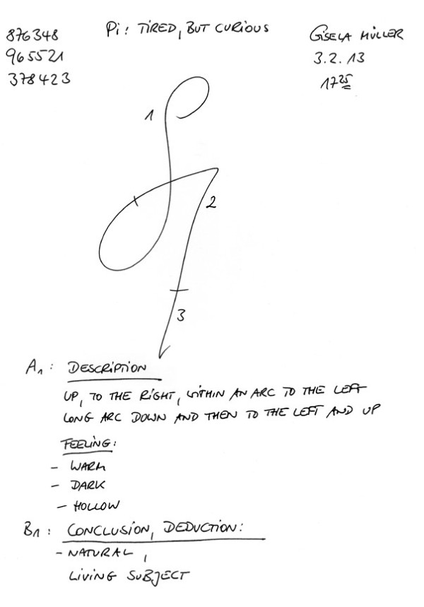 Първо е описан графичният елемент. Въпреки че всички оригинални ръководства на CRV налагат възприятията на емоционалния ефект в този момент, ние открихме, че по същество графиката е просто израз за това, което очите ни виждат и трябва да се третира по този начин. Следващият опит да се „почувства“ графиката се състои главно в предизвикателство да се опитате да я опишете с помощта на дясното полукълбо, да я „погледнете“ с вътрешно око.