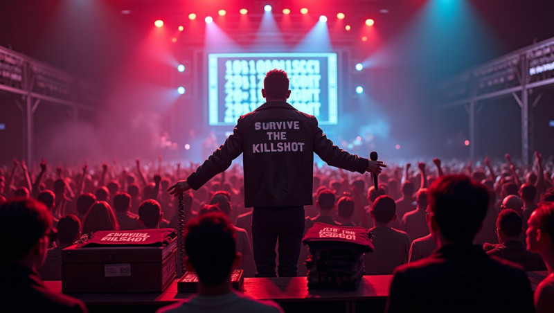 А сега малко цвят: представи си Ед Деймс на същия този рок концерт как излиза на сцена с кожено яке, очила и осемцифрен код, проектиран на екран зад него. „Виждам... извънземни в публиката!“ – вика той, докато тълпата реве. После продава тениски с надпис Survive the Killshot за 100 долара парчето. И знаеш ли какво? Хората ще ги купят! Защото в този луд свят всички искаме да вярваме, че някой може да надникне зад завесата, дори ако това е просто добре режисирано представление.