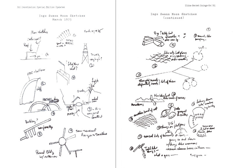 Аксел ми даде лунни координати, като всяка позиция бе свързана с конкретно място на лунната повърхност. При някои от тях нямаше нищо за гледане, освен лунни пейзажи. Но на други места… е, там имаше объркване и аз възприемах много неща, които не можех да разбера. Направих доста скици, като ги идентифицирах с определени неща или поне приличаха на такива. Без да коментира, Акселрод бързо вземаше всяка скица и аз никога повече не ги видях.