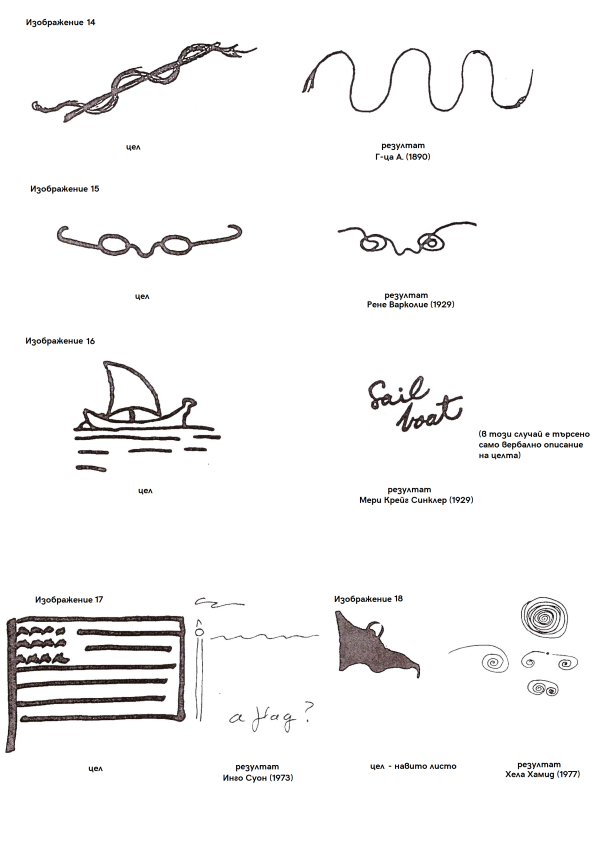 Двойките изображения по-долу са от девет различни индивида и обхващат период от 100 години. Ще забележите обаче, че всички те имат голяма прилика не само в изпълнението на самата рисунка, но и в трудностите, които индивидите срещат във втората група.