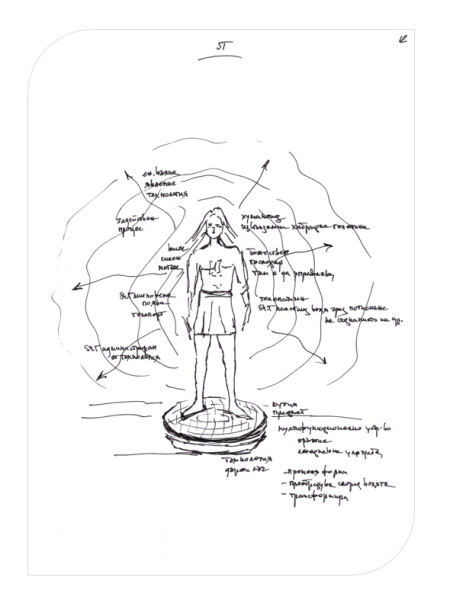 Идеята за посявка е визуализирана чрез яйцеподобна форма, свързана с процеси на разплод и размножение. Дадени са данни с езотеричен смисъл – „ин и ян“, „от-до“, „началото и края“ и се споменава безсмъртието и преходността на живите форми, живота и зараждането му.