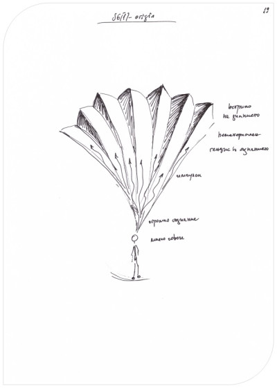 Водещата роля на съзнанието е подчертана чрез сравнението малко човече – огромно съзнание. В съзнанието се наблюдават импулси, движещи се в посока разгръщане на „ветрило на знанието“ (Фиг. 9).