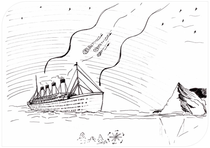 В допълнение бихме насочили вниманието ви и към това, че командният състав на „Титаник“ е игнорирал всички предупреждения за ледени полета по маршрута, първото от които е получено 14 часа преди инцидента.