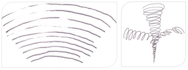 При изследване на най-важното действие около източника на силата, се наблюдават еднакви разгъващи се спирали със стрелки навън. Свързват се с цикличност, точка на усукване, центрофуга. Движението е последователно и следва определени стъпки, етапи.