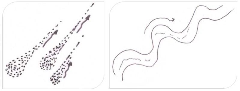 гъвкав поток от енергия, извиващ се вълнообразно (Фиг. 2).