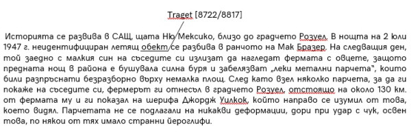 На 8 юли 1947 г. местната преса излиза с материал, че Разузнаването на 509-а Бомбардировъчна група от Военновъздушните сили на Розуел докладва, че в полето се е разбил летящ диск. Съобщава се, че Майор Марсел и един възложител от неговото управление отишли до ранчото и открили диска. След като инспектирало апарата, местното разузнаване го пратило към „по-висши инстанции”. Разузнавателното управление констатира, че не са разкрити подробности относно строежа или външния вид на диска.
